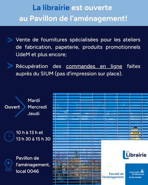 Contact La Librairie UdeM: librairie@sea.umontreal.ca