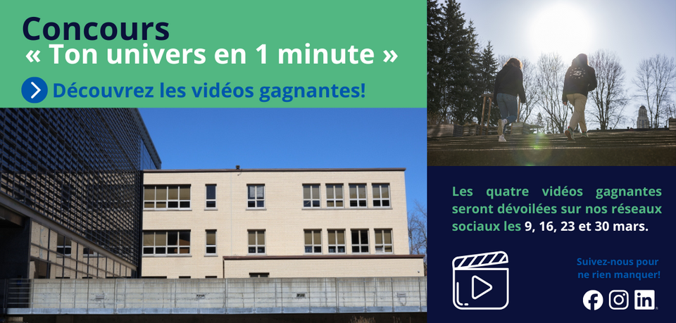 La Faculté de l'aménagement annonce les lauréates et lauréats de la première édition de son concours Ton univers en 1 minute.