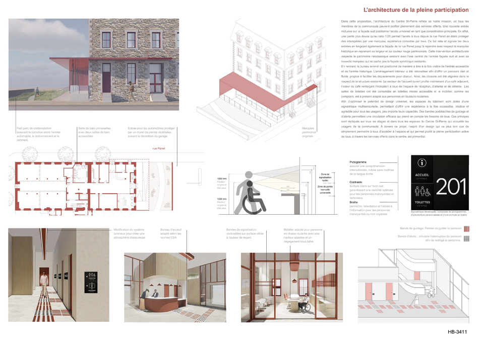 Les étudiantes et étudiants ont eu 48 heures pour relever un défi stimulant : repenser l'accessibilité universelle du Centre St-Pierre, un organisme communautaire logé dans un bâtiment patrimonial du quartier Centre-Sud, à Montréal.