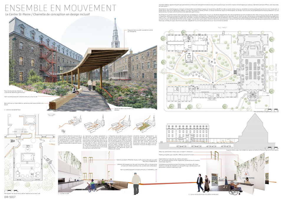 Les membres du jury observent que ce projet «se distingue par une approche poétique et paysagère forte, proposant une transformation radicale du site par le verdissement du stationnement et la création d’un parcours sensible menant au Centre St-Pierre.»