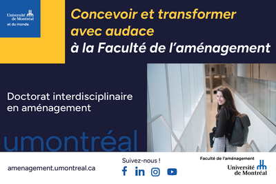 Le doctorat interdisciplinaire en aménagement est axé sur les fondements théoriques, philosophiques et pratiques des sciences de l’aménagement.